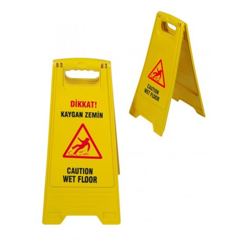 Açılır-kapanır özellikte 2 parçadan oluşan ve her iki yüzü yazılı olan kaygan zemin uyarı levhaları talp edilmesi durumunda farklı dillerde de üretilebilmektedir.